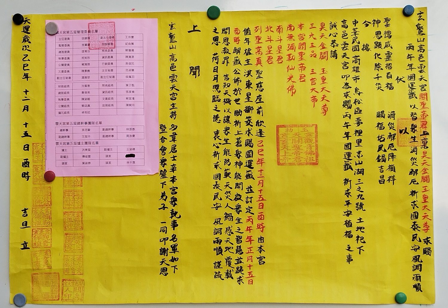 ▲高雄市鳥松區玄鷲山高邑雲天宮依循古禮抽出明年丙午年的「年度國運籤」,結果為第三十八號下下籤。(圖/記者陳立驌攝)