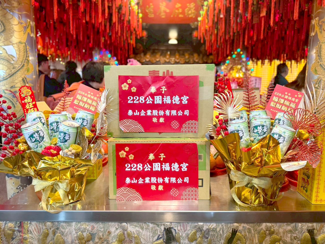 ▲泰山食品與二二八公園福德宮合作,於今日(2月3日)舉辦奉茶祈福活動。(圖/泰山食品提供)