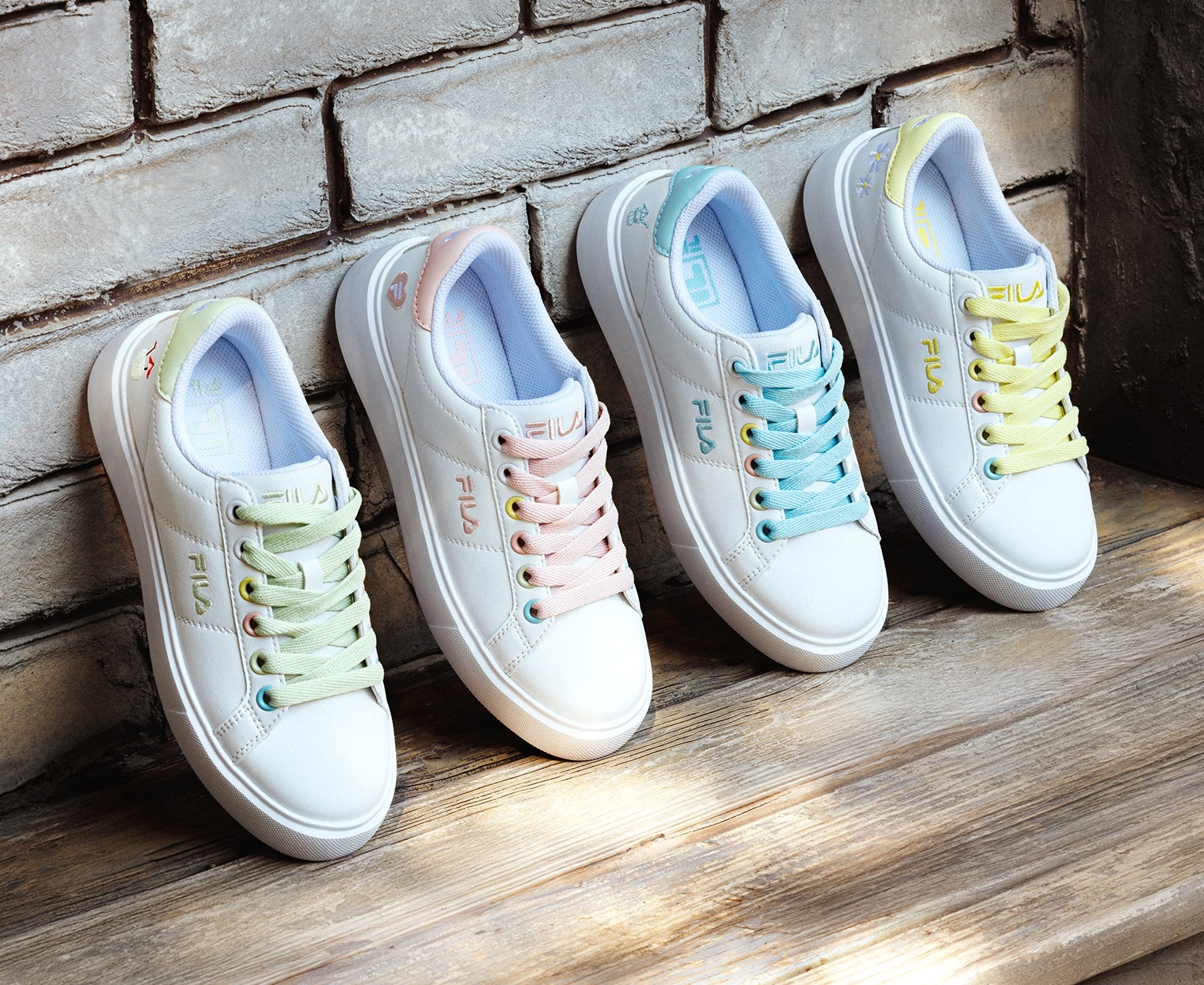 作為戀愛的完美終章,FILA 將義式美學悉數融入小白鞋系列。女款小白鞋採用「馬卡龍色厚底」設計,不僅優化身型比例,更將摩卡壺、小雛菊等義式元素化作精緻刺繡,綻放甜美氣息。