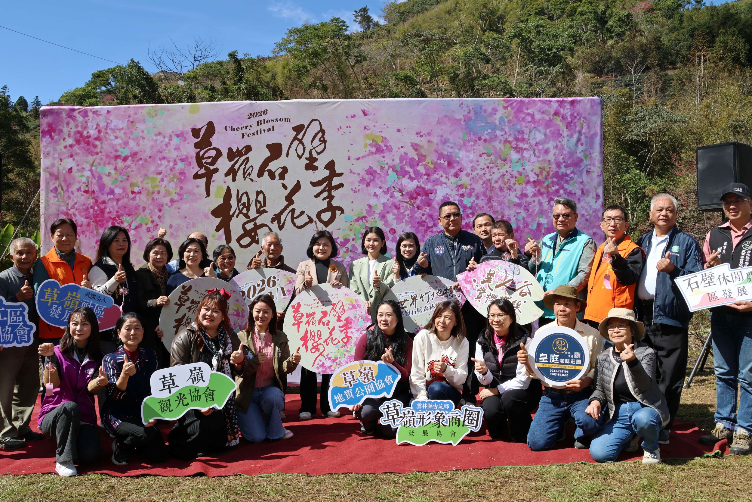 張麗善表示,草嶺石壁櫻花季超過2萬株櫻花遍布山城包含紅粉佳人、寒櫻、八重櫻、富士櫻及垂櫻等超過20種櫻花在草嶺與石壁地區陸續綻放,今年規劃「美人谷環線」賞櫻步行路線,串聯東碧山莊、蘇家農場、觀星坪、仙夷農場及九芎神木等景點,沿線粉色花海與層層山景交織,適合遊客放慢腳步,漫步山城、感受春日氣息,全國民眾不要錯過,寒假、春節期間前來雲林感受山林的春日風景。