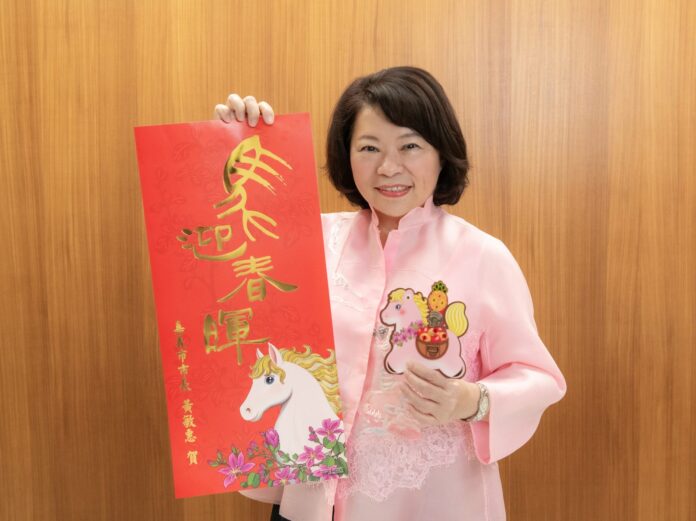 黃敏惠表示,嘉義市政府今年再度邀請知名插畫家SMART莊信棠,及書法家、也是市府老同事饒嘉博合作,共同完成「馬迎春暉」春聯設計,春聯己發放在家戶中,讓年節氣氛在城市也逐步展開。