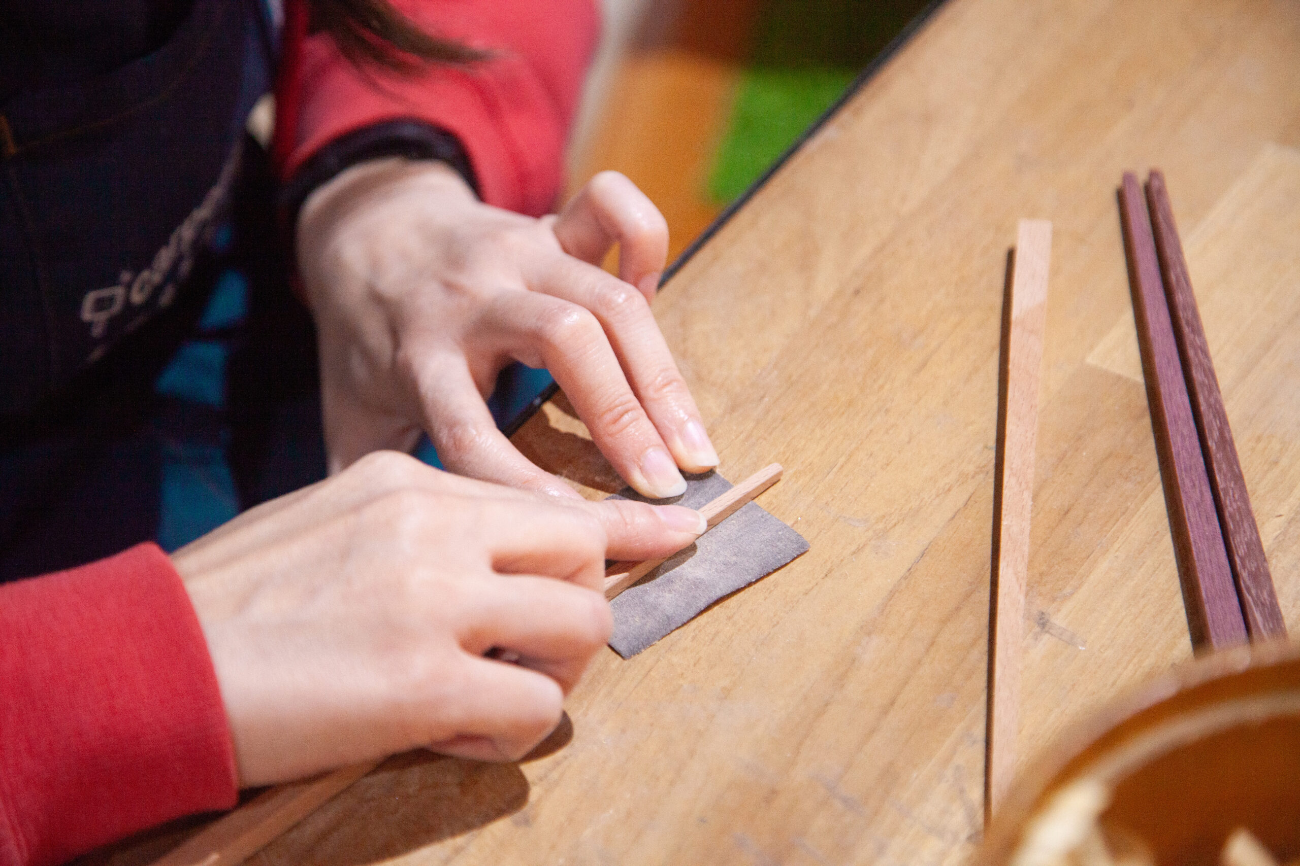 在課程中,民眾可從選木、配對、打磨到收尾,親手完成一雙筷子。這個過程緩慢而專注,木屑落下的聲音,像是時間被慢慢削薄;筷子,向來是華人餐桌上最日常的工具,卻也最貼近生活。