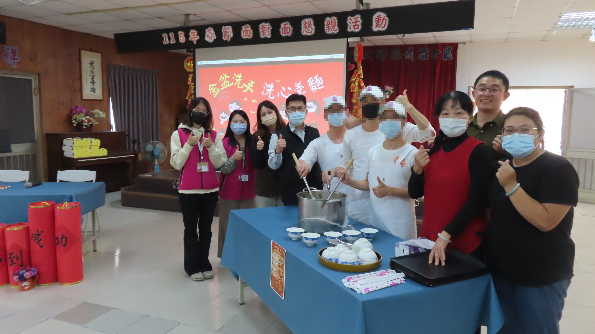 為讓收容人感受春節家庭溫暖,提升家屬支持關係,法務部矯正署台南監獄明德戒治分監於今(4)日下午舉辦「115年春節面對面懇親」活動,教輔小組特別設計「金盆洗手,洗心羹麵」家庭互動方案,由收容人親自將熱騰騰的肉羹盛予家屬一起享用,象徵接受戒癮處遇後,能洗心「羹」面,重新出發,回歸家庭溫暖,本次活動邀請台灣更生保護會台南分會、台南更生輔導團李秀英團長、烹飪老師林瑞琪,他在今天上午即帶領小吃班5名收容人熬煮台南小吃-肉羹湯,在備料及烹飪過程均傾囊相授,期望小吃班收容人能貢獻所學,透過參與烹調美味佳餚,為懇親收容人與家屬間搭起溝通的橋樑。
