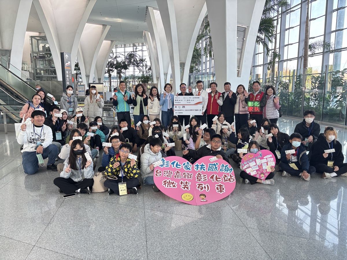 為幫助弱勢學童開拓視野、豐富寒假生活,高鐵彰化站今(4)日協助彰化家扶中心芬園據點的學童及師長,搭乘高鐵前往台北一日遊,行程將安排轉乘捷運到101參觀,體驗多樣化城市風貌。出發前,高鐵彰化站李元弼站長特地為學童們送上祝福,希望孩子們能藉由高鐵之旅,留下美好印記。