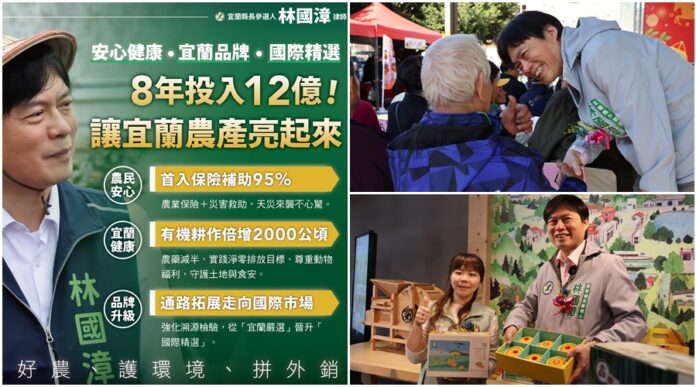 宜蘭縣長參選人林國漳2月4日由縣議員林詩穎等人陪同,出席頭城鎮農會農民節活動時向農友提出農業政見,說明安心健康—「宜蘭品牌」好農計畫,承諾將投入12億元經費,透過「農業保險雙軌保障」、「有機面積倍增」以及「建立動物福利基準」三大支柱,將宜蘭農產從「在地嚴選」提升為「國際精選」。