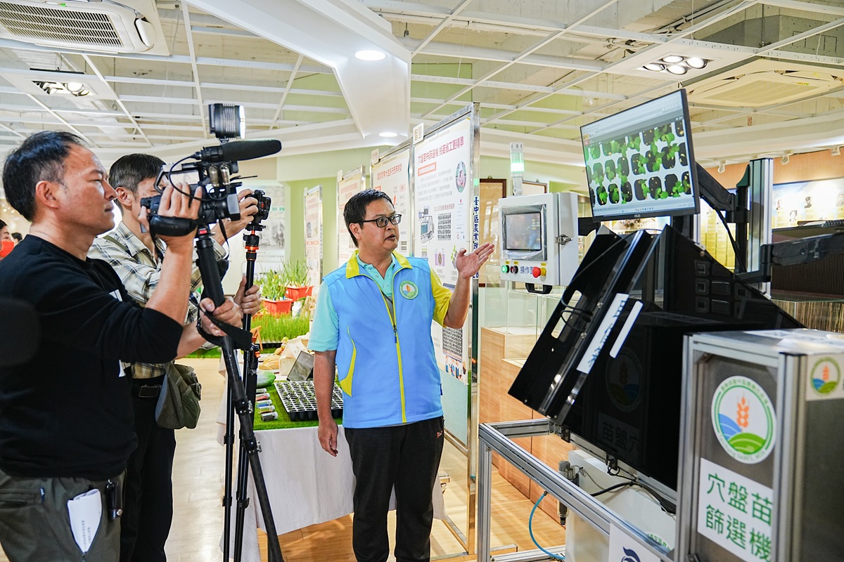 ▲張佳偉助理研究員向媒體記者說明穴盤苗株篩選機成果。(圖/記者蕭麗鳳攝)