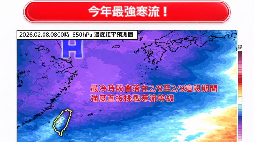 第3,強度強,中央氣象署已針對此波強冷空氣強度提升至今年首波寒流等級,最冷時段會落在2/8至2/9這段期間。