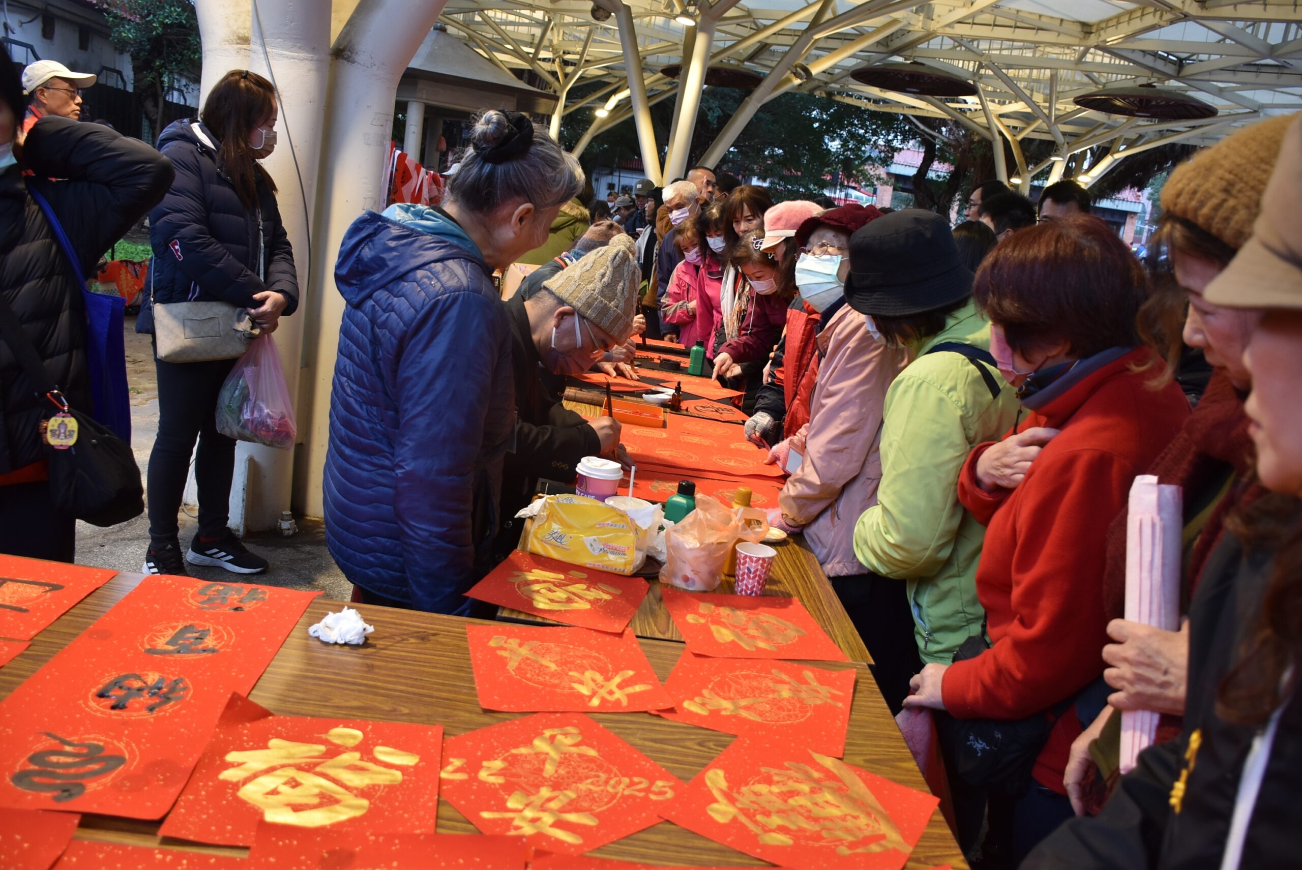 ▲新竹縣竹東鎮公所訂於2月8日(週日)上午,在竹東客家戲曲公園舉辦2026「馬年迎春名家揮毫送春聯活動」。本圖為去年相關活動舉辦時現場照片。(圖/竹東鎮公所提供)