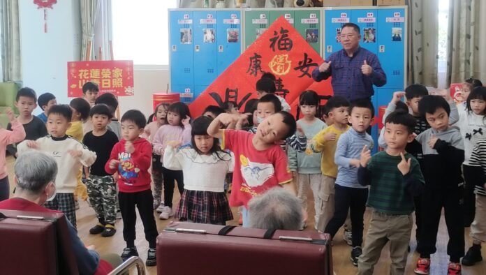 花蓮榮家為持續推展老幼共融照顧模式,所屬教保中心學童前往日照中心向長輩獻上祝福,長輩也回贈「一元復始」馬年小紅包,洋溢新春佳節的歡愉氣氛。