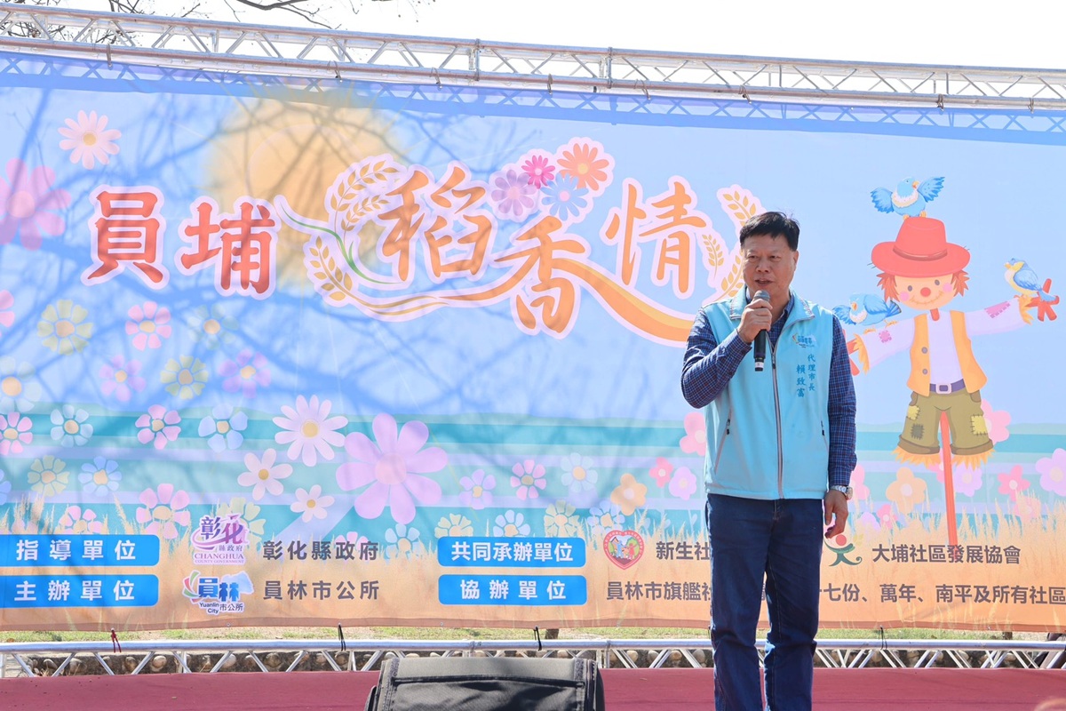 員林市公所今(7)日在員林市大埔里西區運動公園舉辦2026員林社區食農教育推廣「員埔稻香情」活動,由員林市代理市長賴致富、縣政府秘書游筑凱、賴沛然,縣議員凃俊任、劉惠娟、曹嘉豪、張錦昆、黃正盛,與員林市民代表會主席張國良暨各代表,新生社區發展協會理事長林育生、大埔社區發展協會理事長游庭訓,各里長暨社區居民等嘉賓,共同揭開活動序幕,活動自2月7日起至2月22日止。