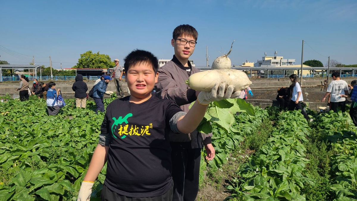 ▲大家在冬日暖陽下走入田間,親手拔起飽滿白胖的蘿蔔,不僅體驗與土地親近的勞動樂趣。(圖/記者蕭麗鳳攝)