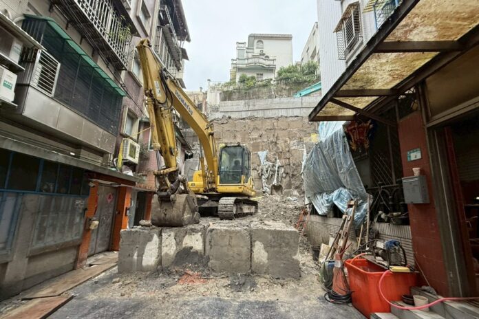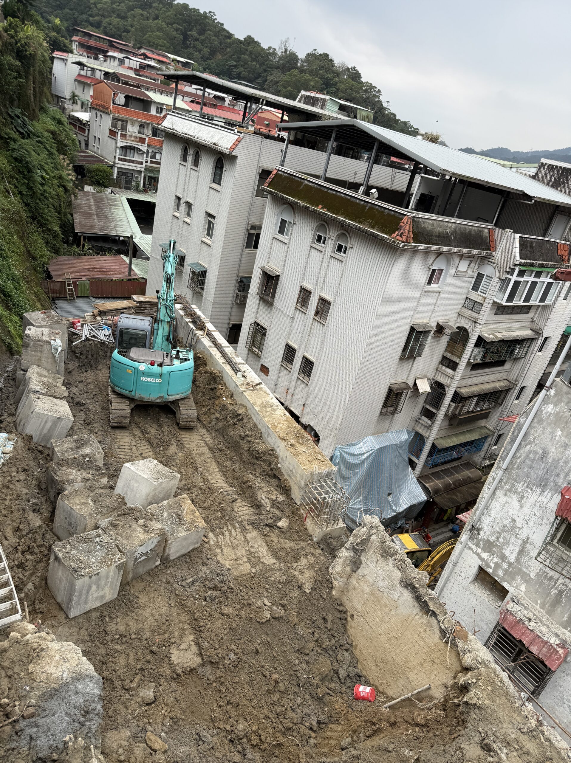 負責災後搶修工程養工處長鄭立輝說明,去年底展開擋土牆上方斜坡整地修復與鄰房保護,並分階段打設地錨與基樁鑽掘、灌漿作業,施工團隊在技師全程監控下,以每兩天完成三支基樁為目標趲趕進度,整體邊坡逐步達到穩定的狀態。