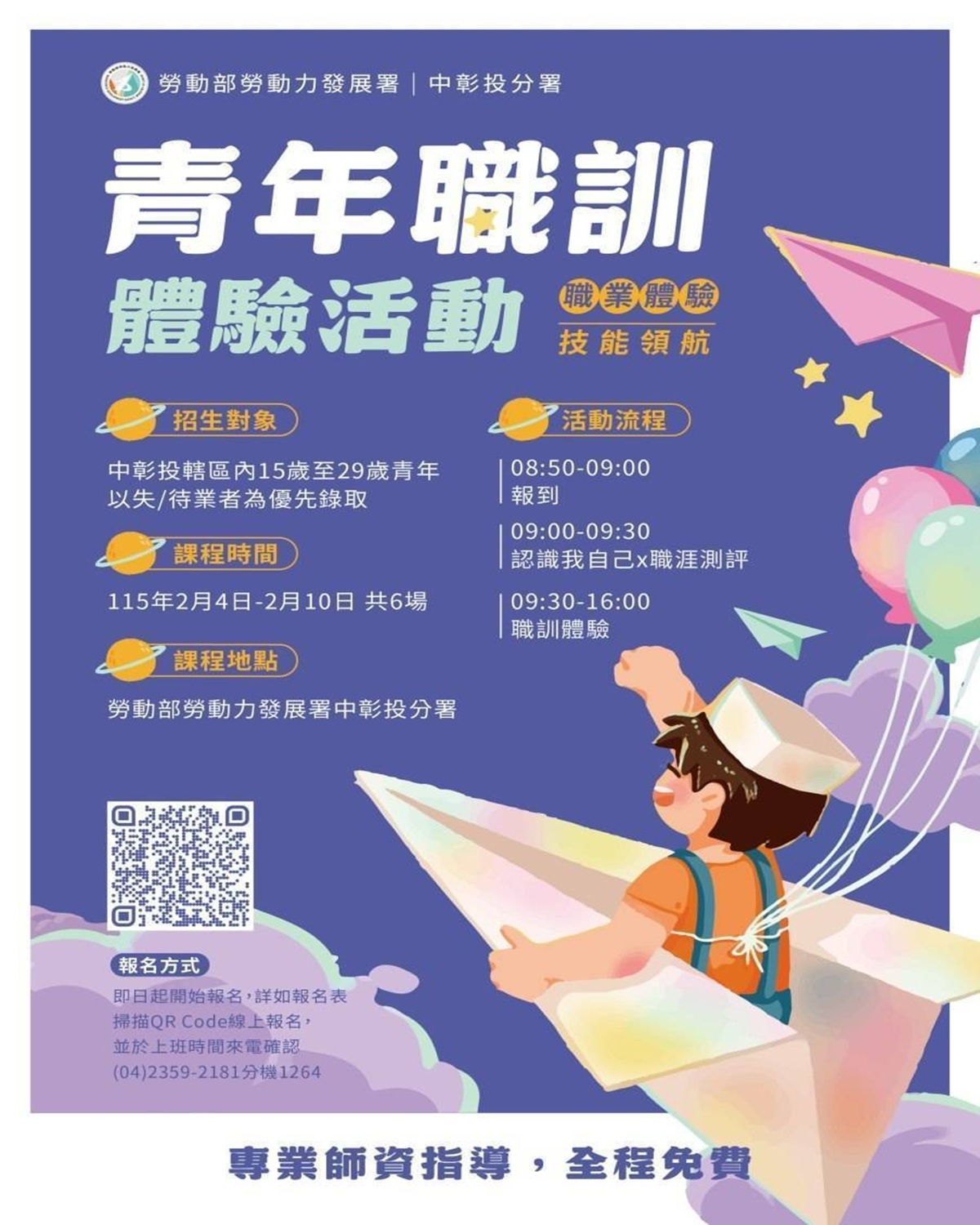 中彰投分署表示,本次職訓體驗課程緊扣重點產業發展趨勢,讓青年在模擬職場的訓練工場中,透過實際操作了解產業工作環境與所需技能,並搭配職涯測評工具,協助青年釐清自身興趣與未來職涯方向。若體驗後對相關職類產生學習興趣,也可銜接報名分署辦理的職前訓練課程,循序培養專業技能,並在結訓前提供就業輔導,協助青年順利接軌職場。