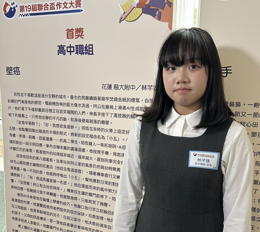 第19屆聯合盃作文大賽總決賽,來自全國各地的優秀學子2,879人一較高下,花蓮縣拿下6項大獎,其中,慈大附中學生林芊逸筆下生花,榮獲高中職組首獎,技驚四座,充分展現花蓮學子在全國大型作文賽事中的穩定實力與優異水準。