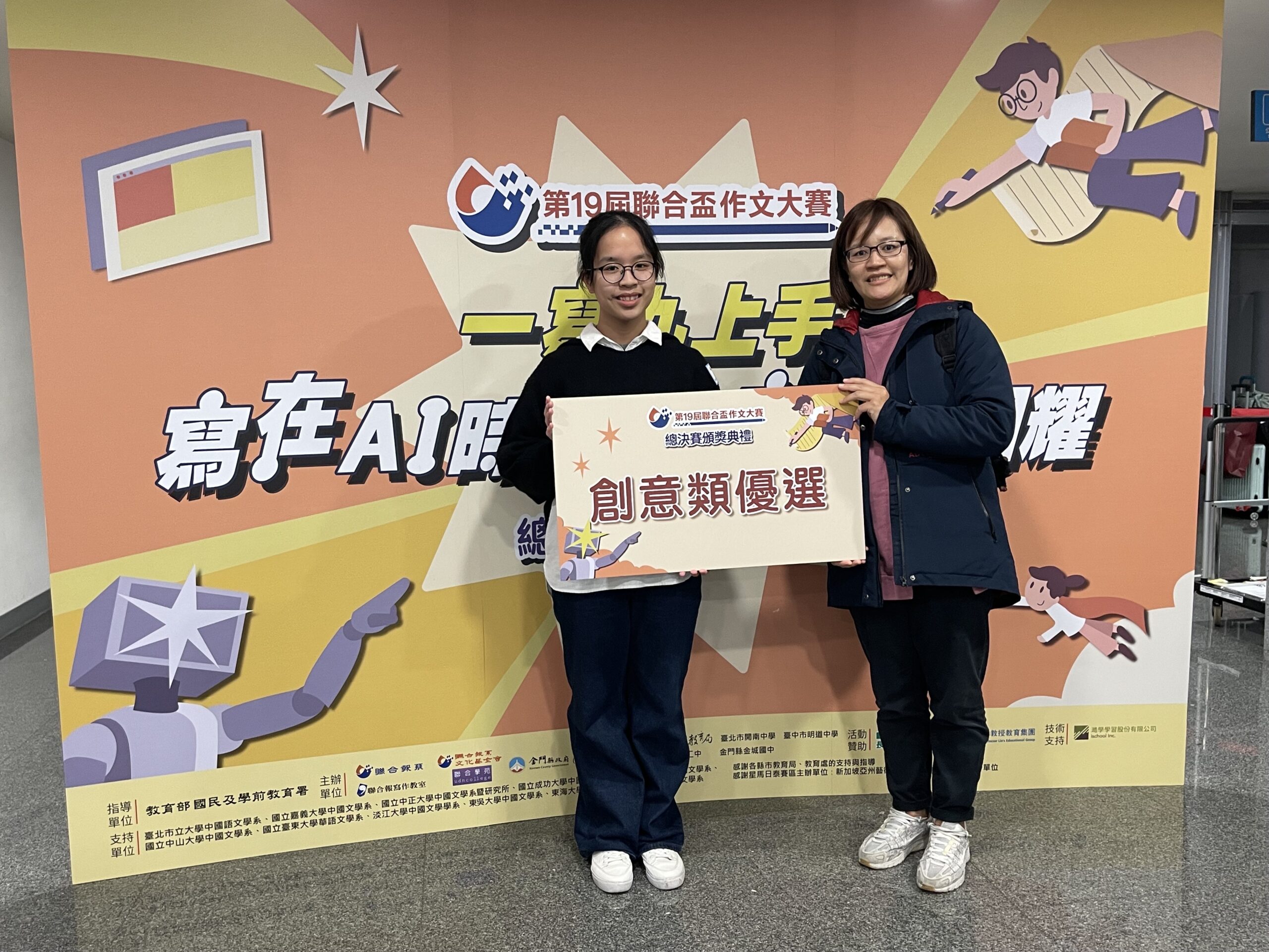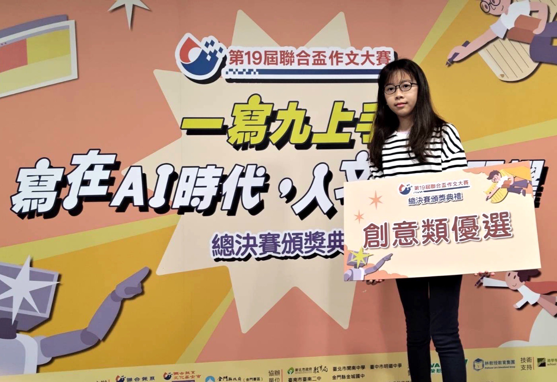 - 國小高年級組創意類優選:明義國小林芊卉。國小中年級組說服類優選:慈大附小賴萖萖。