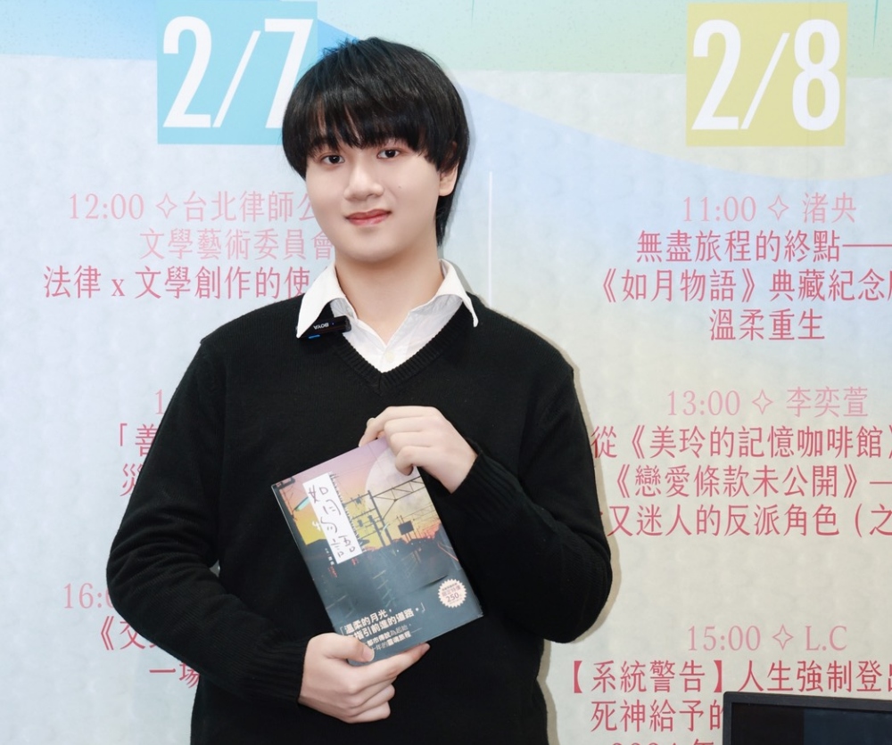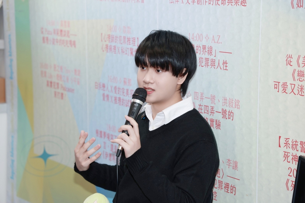 ▲新銳作家渚央以獨特的「厭世幽默」逗樂全場。自述剛結束自學生活、進入日文系就讀大一的他,直言2025年是「悲慘的一年」。(圖/千魚娛樂提供)