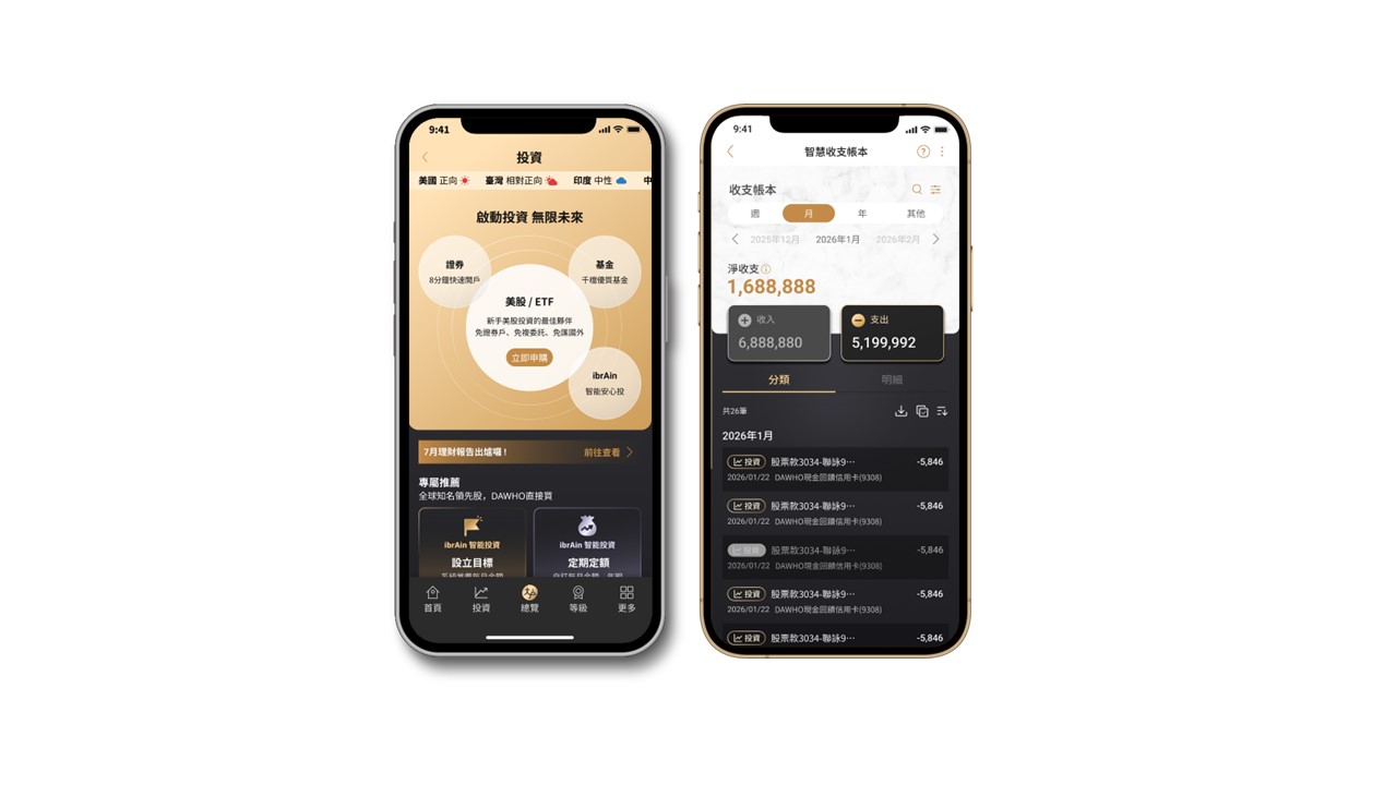 在 DAWHO 數位帳戶中,消費、儲蓄與投資可於同一平台完成。對於沒有時間頻繁研究市場的家庭用戶而言,也能透過 FinPulse AI智慧功能分析收支數據,搭配證券、美股、ETF或基金定期定額投資功能,協助建立更有系統的理財節奏,降低操作門檻。