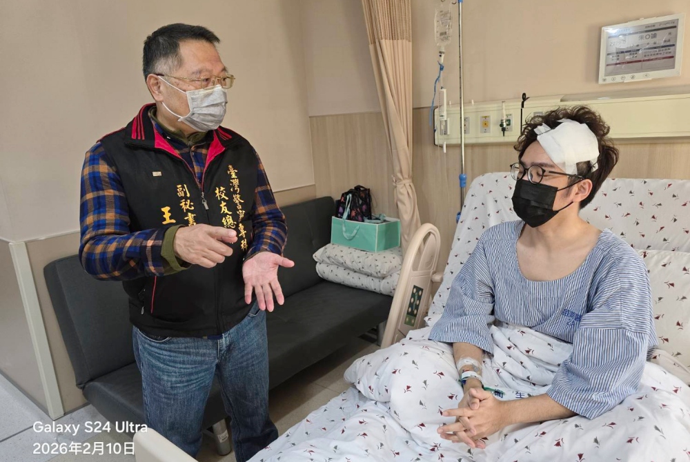 ▲警專校友總會代表與受傷員警於病房內交流關心傷勢復原情形,展現警界同袍情誼。(圖/警專校友總會提供)
