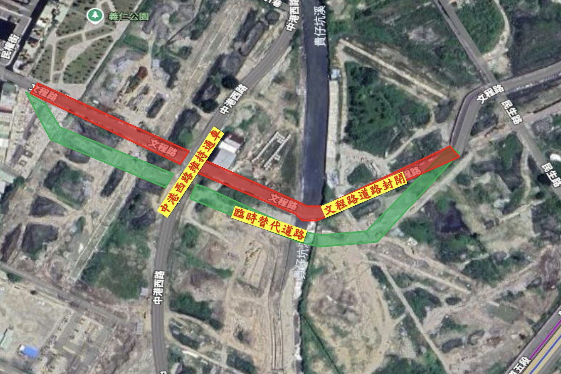新北市政府水利局因應「貴子坑溪河川環境營造計畫(第3-1標)」文程橋施工,將自2月24日(二) 上午10時起,封閉泰山區文程路(民生路以西至文程路18巷約500公尺包含文程橋段),並同步啟用新闢的替代道路維持雙向通行。
