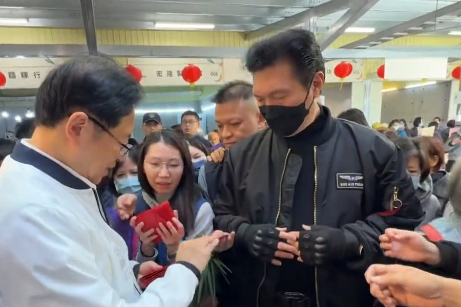 桃園市長張善政來到南門市場,除了與攤商以及消費者拜早年外,還特別發放春節福袋,不少民眾都來領取,也讓現場人潮壅擠。