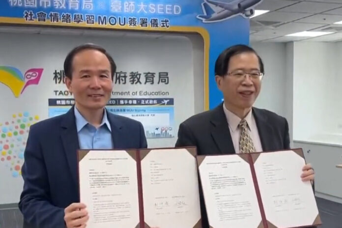 ▲桃園市政府教育局與國立臺灣師範大學正式簽署「共同推動社會情緒學習合作備忘錄MOU」。(圖/董雨菲攝)