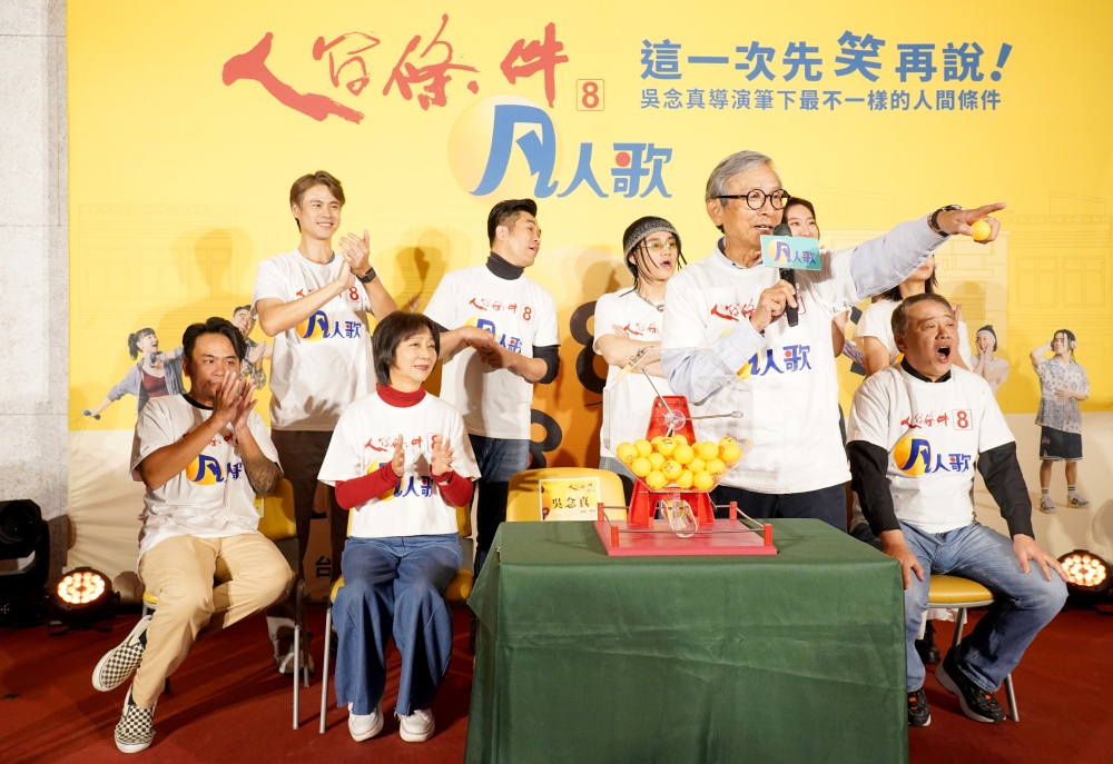 ▲《人間條件8》凡人歌的記者會上,導演吳念真用彩球抽獎帶給現場的所有來賓,讓大家開心抽獎過好年。(圖/綠光劇團提供)