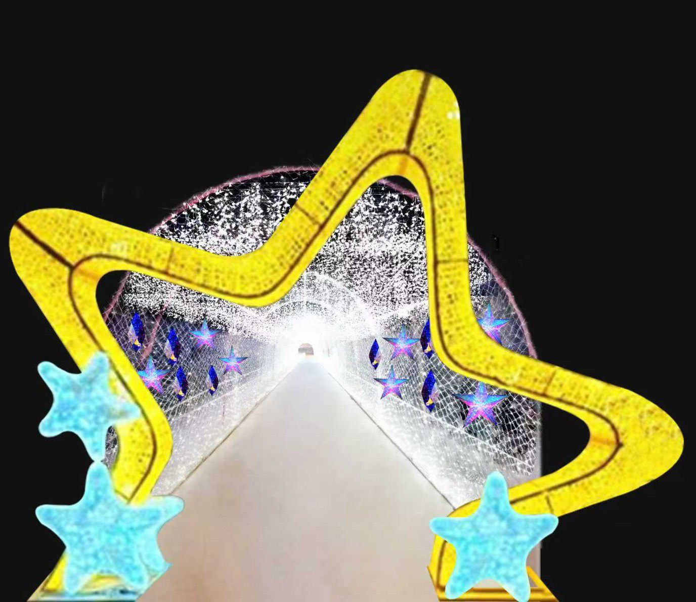 ▲長達30米的星光廊道打造繽紛的燈光裝置。(圖/嘉義縣政府提供)