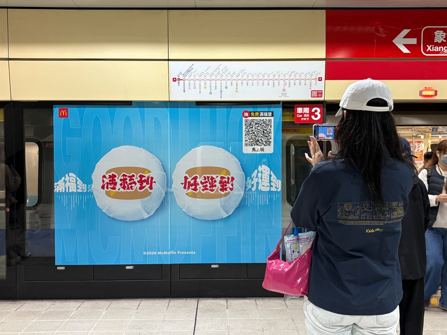 過年走春、拜年之餘,誰不希望新的一年好運先到位?看準農曆年後大家最需要「補運」的時機點,麥當勞與加拿大創作歌手暨聲樂老師 Rozette(橘老師)跨界合作,讓搭捷運也能接收到滿滿好兆頭。 2月11日至 2月12日,只要走進台北捷運101世貿站,就有機會聽見洗腦又應景的「滿福到~好運到~」好運迷音化身進站音樂,在人來人往的月台響起,彷彿替每一位旅客送上新年度的祝福, 只限兩天,想要一整年都好運的人別錯過。不只聽得到好運,實際優惠也同步到位,2月11日至2月15日期間,只要進到北捷58個限定站點,打開LINE上就能接到麥當勞的好運優惠推播,讓好運直接落到手機裡;而整個2月,捷運閘門貼上也設有活動QR Code,掃描即可參加KKBOX活動,還有機會抽中免費的豬肉滿福堡兌換券。