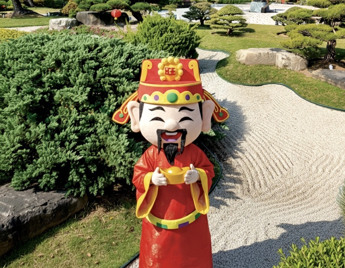 ▲春節限定的迎財神活動同樣吸睛,初一至初六期間財神爺驚喜現身園區,與遊客互動拜年。(圖/成美文化園提供)