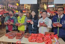 ▲永靖鄉米食果苗節盛會,立法委員陳素月(中)、永靖鄉長魏碩衛(右一)親自出席活動宣傳,讓民眾更了解在地農特產的美好,一同把愛與關懷傳出去。(圖/永靖鄉公所提供)