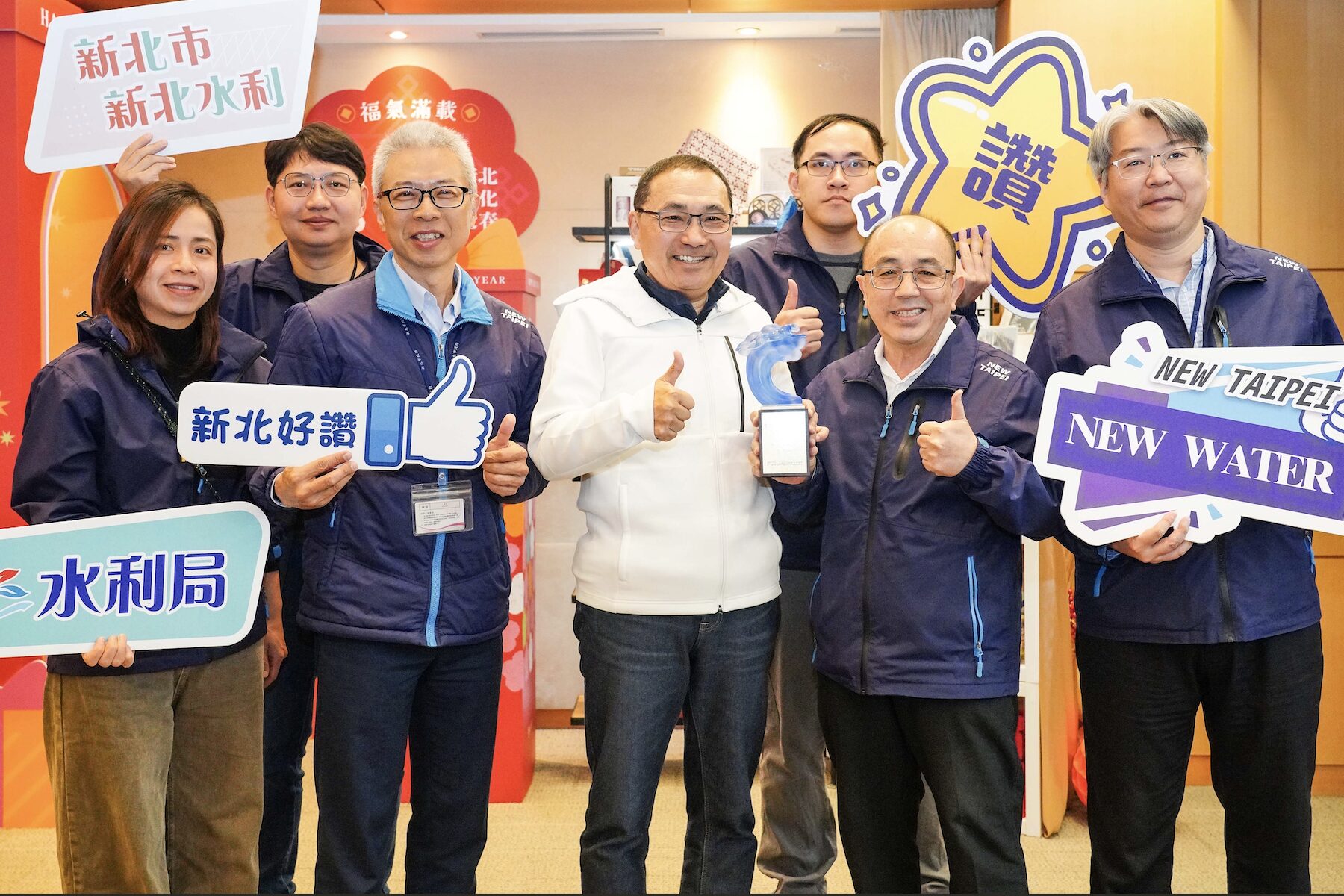 ▲智慧防汛榮獲2025雲端物聯網創新獎-傑出應用獎,(11)日於市政會議中,水利局長宋德仁率隊,將這份榮耀成績獻給侯友宜。(圖/新北市水利局 提供)