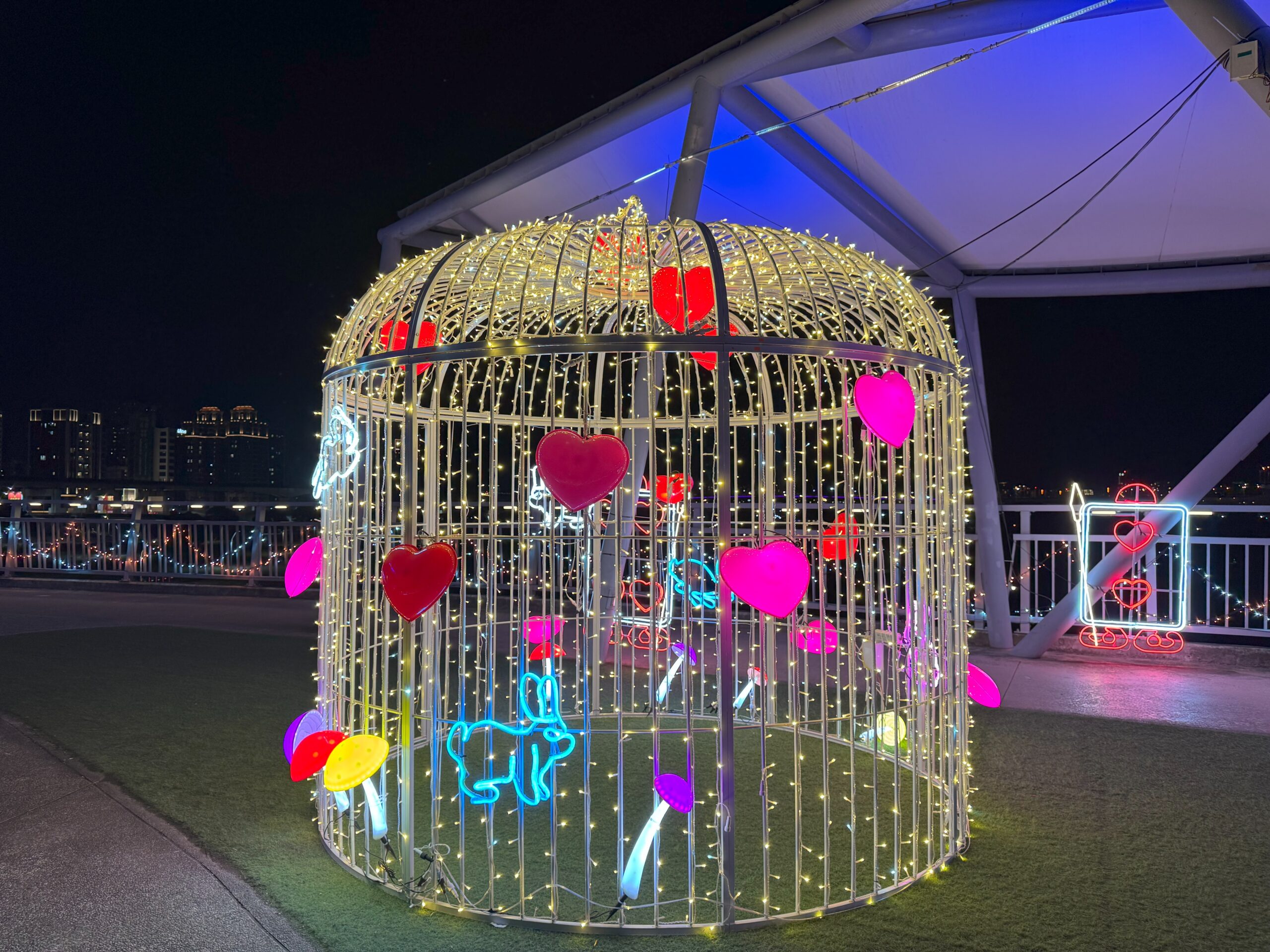 ▲戀光裝置-心動光籠-透過互動式光雕裝置,體驗情人節專屬的浪漫氛圍。(圖/新北市高灘處 提供)。(圖/新北市高灘處 提供)
