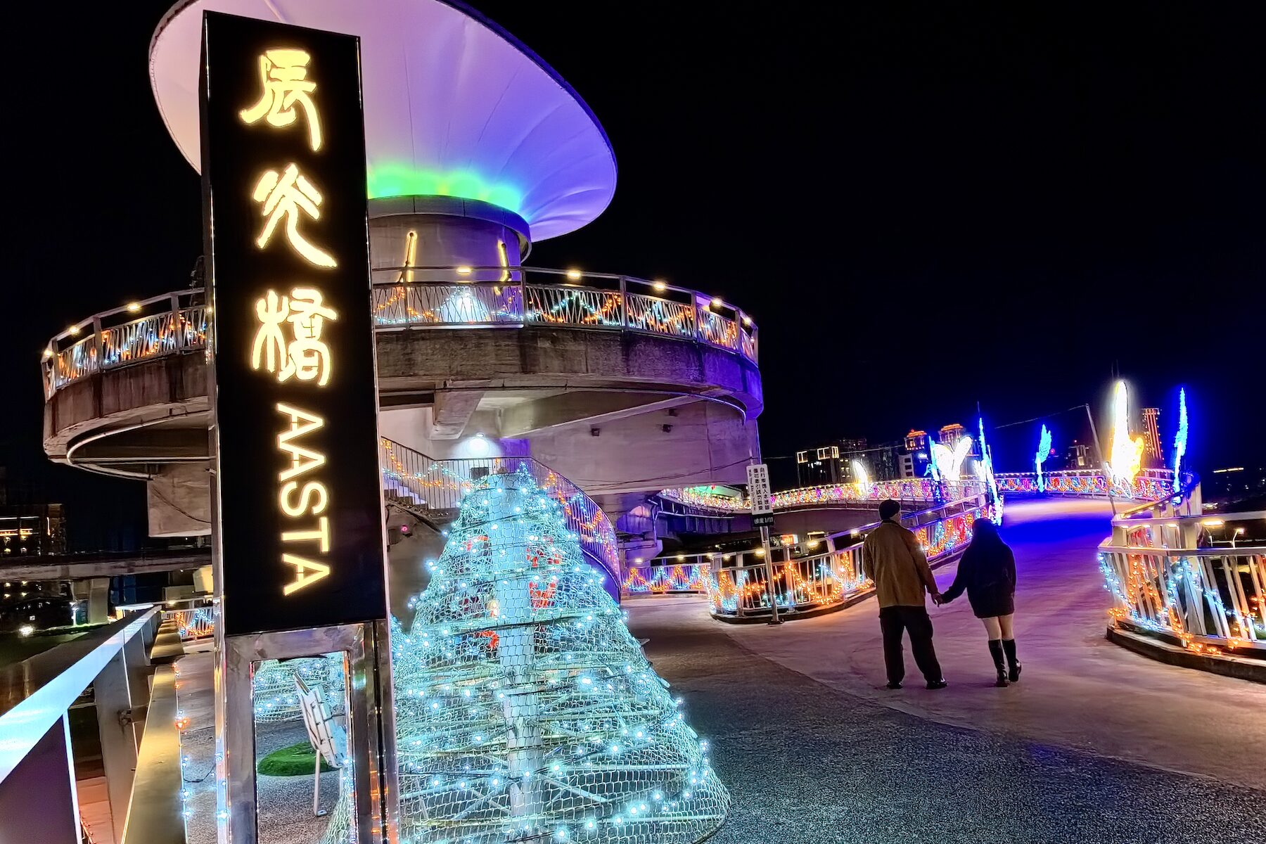 辰光橋位於三重雙捷交匯站,橋體以牛郎織女重逢意象為設計靈感,雙層雙曲線橋台宛如蜿蜒銀河,象徵跨越時空的相遇與相守。每年情人節期間,辰光橋光雕展皆與新北燈會展期相互呼應,已成為新北市夜間最具人氣的浪漫地標之一。