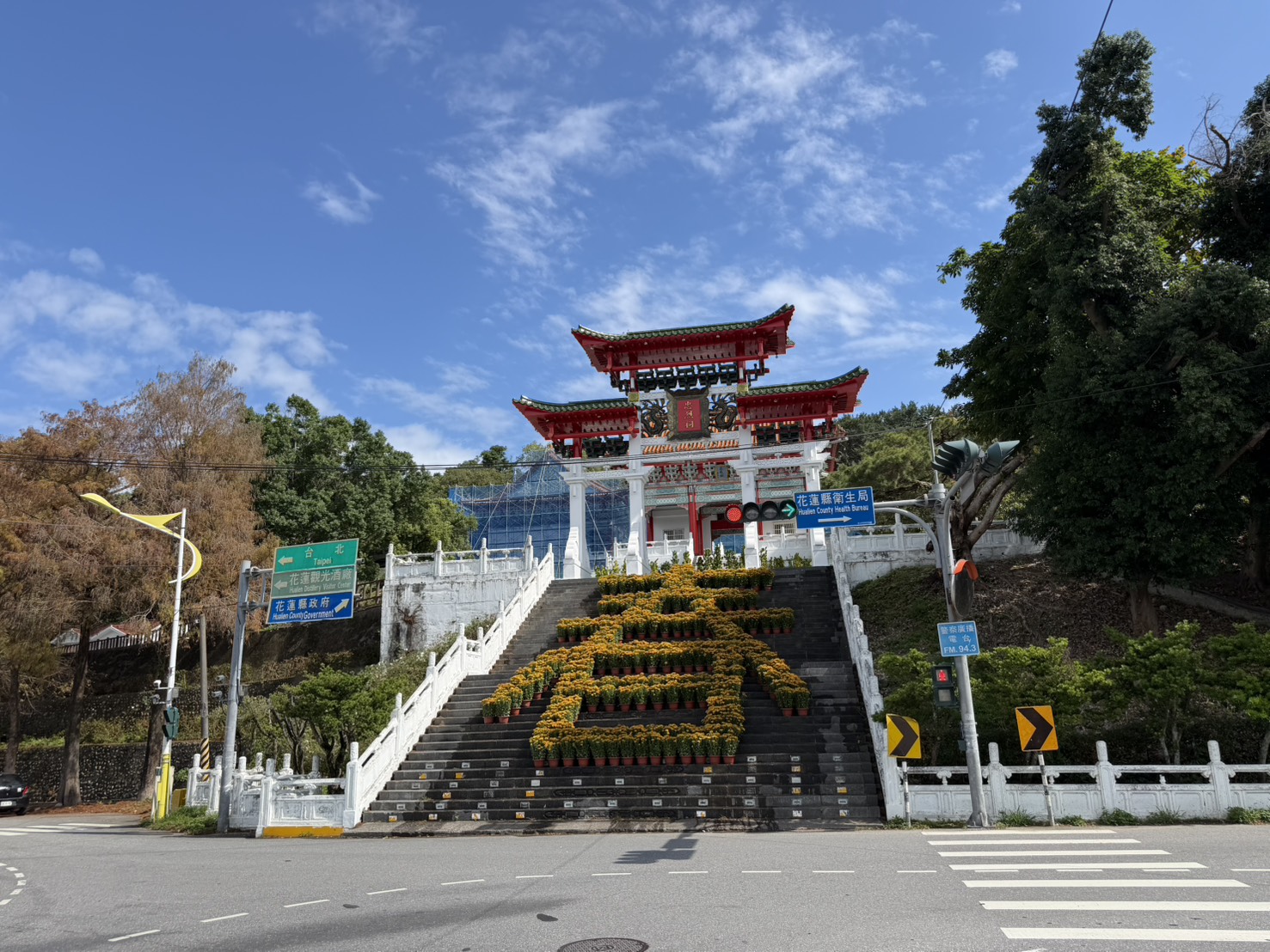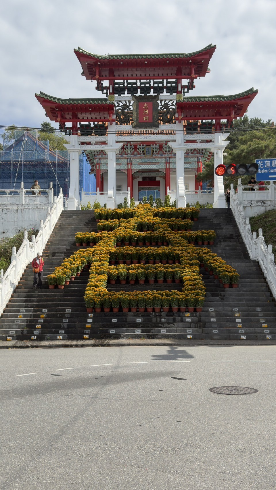 縣府民政處指出,佈置以黃色雛菊為主軸,巧妙搭配喬木植栽與年節應景元素,融合了傳統祭祀空間的肅穆與現代園藝美學,讓忠烈祠在維持既有莊重氣氛的同時,展現出春意盎然的視覺層次。這抹暖黃色的地景藝術,成為今年花蓮春節新亮點。