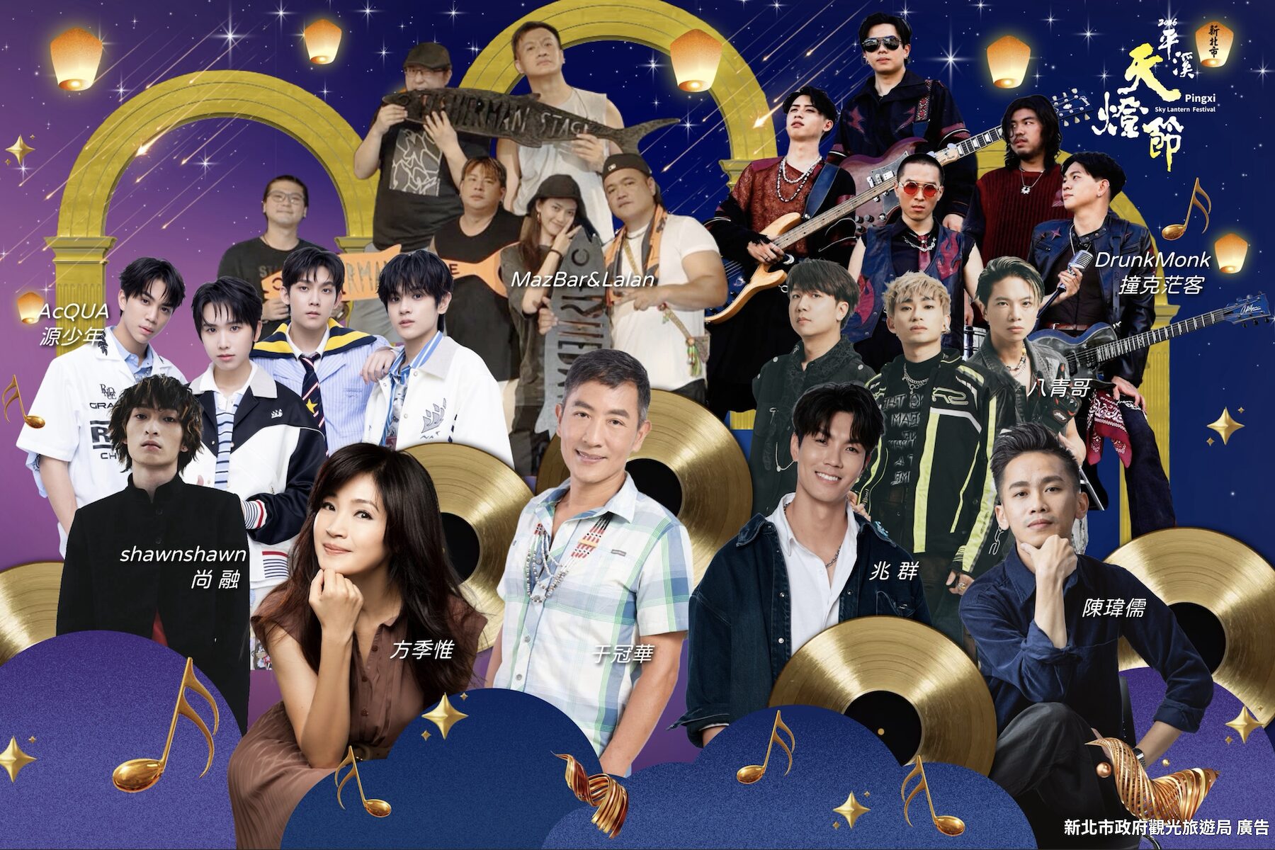 「2026新北市平溪天燈節」除了感動人心的天燈施放時刻外,舞臺節目表演同樣精彩連連,邀請地方團體、經典歌手及青春唱跳團體等,為大家獻上馬年新春祝福,其中2/27(五)將由「平溪國中十鼓隊」震撼開場,接續「方季惟」、「于冠華」、「兆群」及「MazBar &Lalan」輪番演出,而3/3(二)則由「黑金歲月舞蹈團」熱力開場,舞出馬年祈福意象,並由「八青哥」、「shawnshawn尚融」、「陳瑋儒」與「DrunkMonk 撞克茫客」接力為大家帶來精采演出,最後由「AcQUA源少年」帶來當日壓軸表演。今年新北市平溪天燈節在每一波天燈施放前更特別安排馬年主題光雕投影秀,伴隨夜空中百盞天燈冉冉升起,象徵馬到成功、心願成真,為活動增添璀璨難忘的光影盛宴。