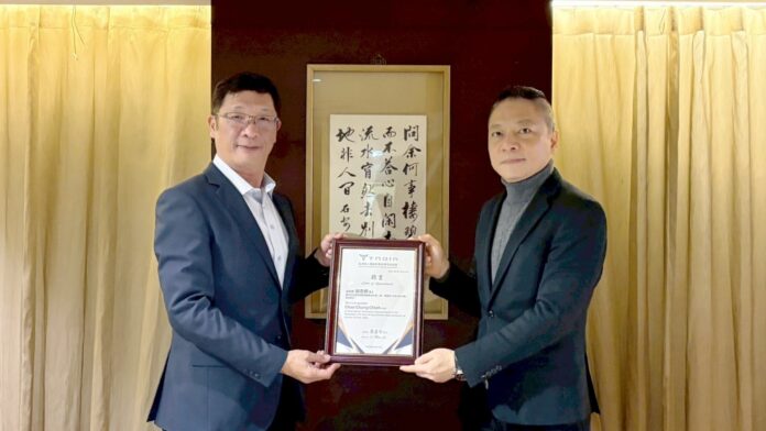 ▲亞洲無人機創新園區廠商協進會敦聘趙忠傑博士出任首席顧問兼歐洲代表,雙方於聘任儀式中完成聘書頒授,象徵台灣無人機產業正式強化歐洲布局與制度對接。(圖/台波商會提供)