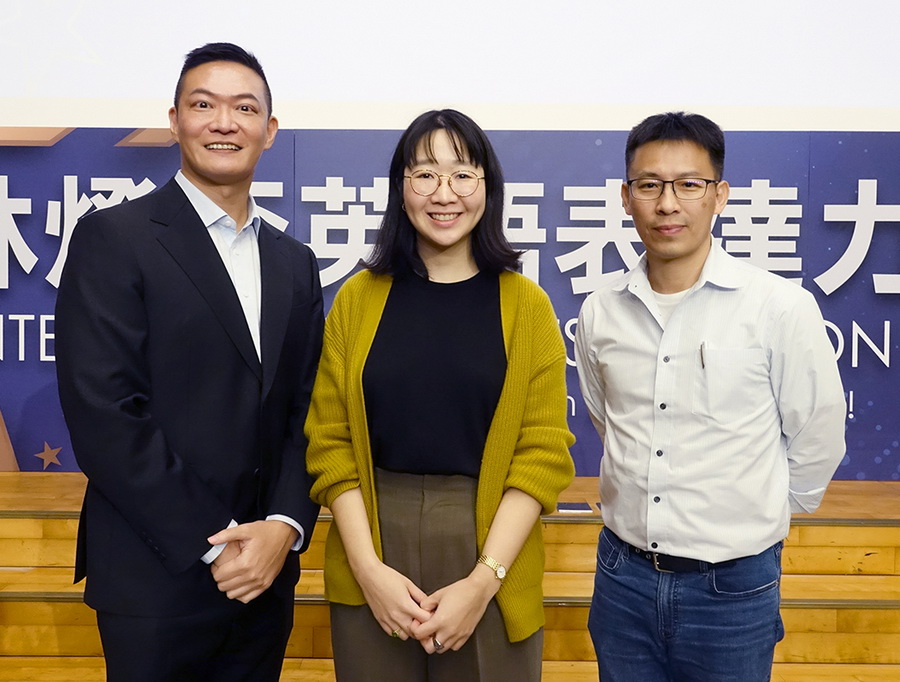 ▲第六屆「林燈盃英語表達力競賽」總決賽評審團陣容堅強,有擔任多屆評審的金葵投資總經理許宗立(左)、中研院歐美研究所副所長王智明(右)與蘇毓芬博士(中)。(圖/林燈文教公益基金會)