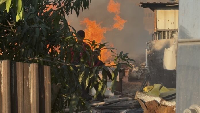 關廟一處木棧板工場火警。記者王俊勝 攝,下同
