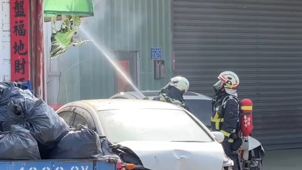 消防隊員到場灌救。翻攝畫面
