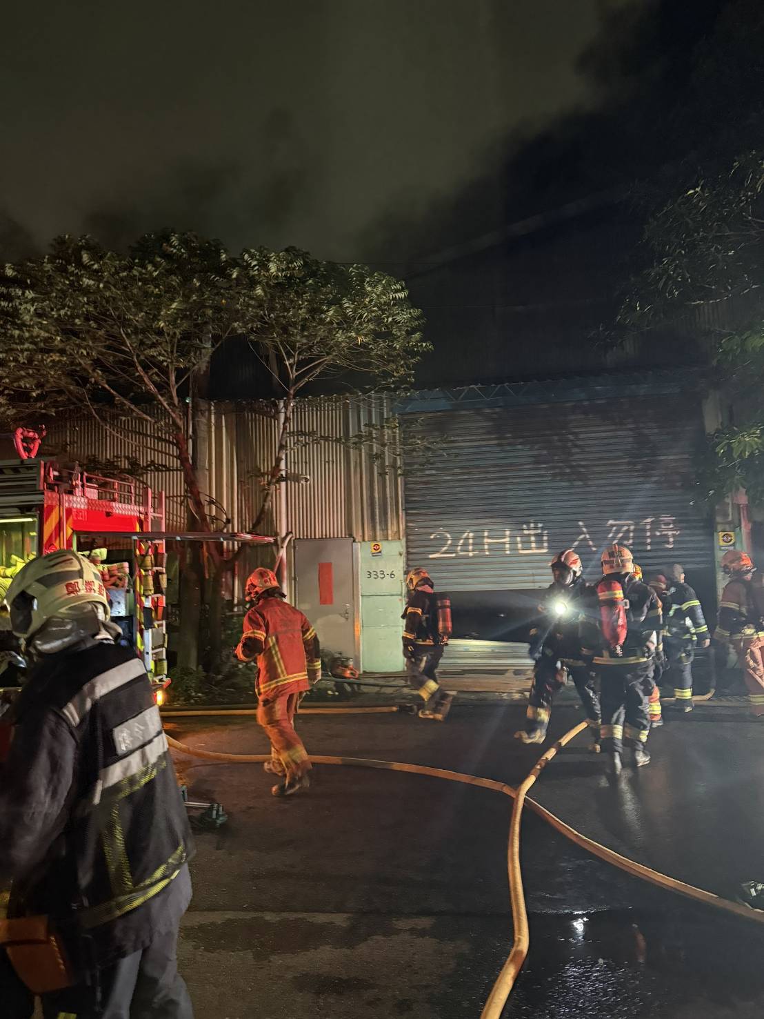 蘆洲工廠大火消防隊員前往灌救。