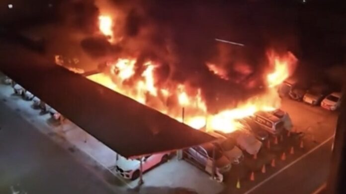 台南安南汽機車暫置場火警。記者王俊勝翻攝