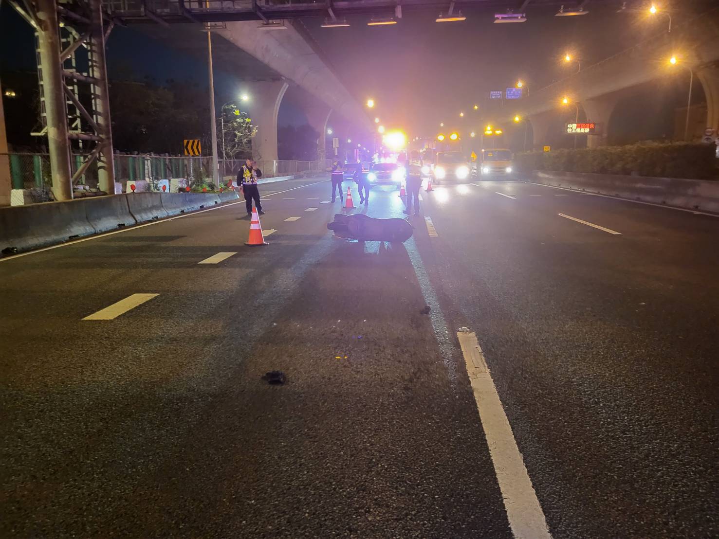 國道1號18日晚間發生機車闖入案件!該名外籍男移工騎士先後遭4輛自小客車撞擊,造成左腿骨折全身多處擦挫傷,全案由國道警察第一大隊調查處理中。