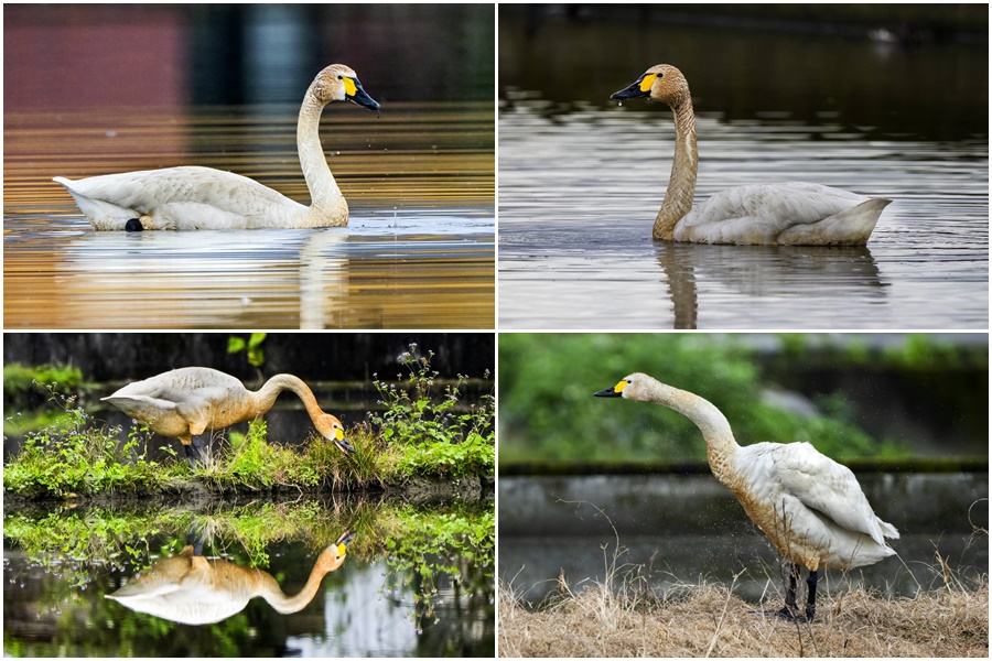 今年出現在員山大湖的小天鵝雖然只有一隻,但立即引起關注,無論是悠遊水面、埋首覓食或舉喙理羽,還是踏水展翅飛翔,甚至來個水上芭蕾,千姿百態備受關注,讓愛鳥人士過足了鳥癮。