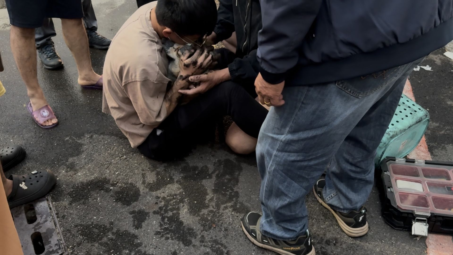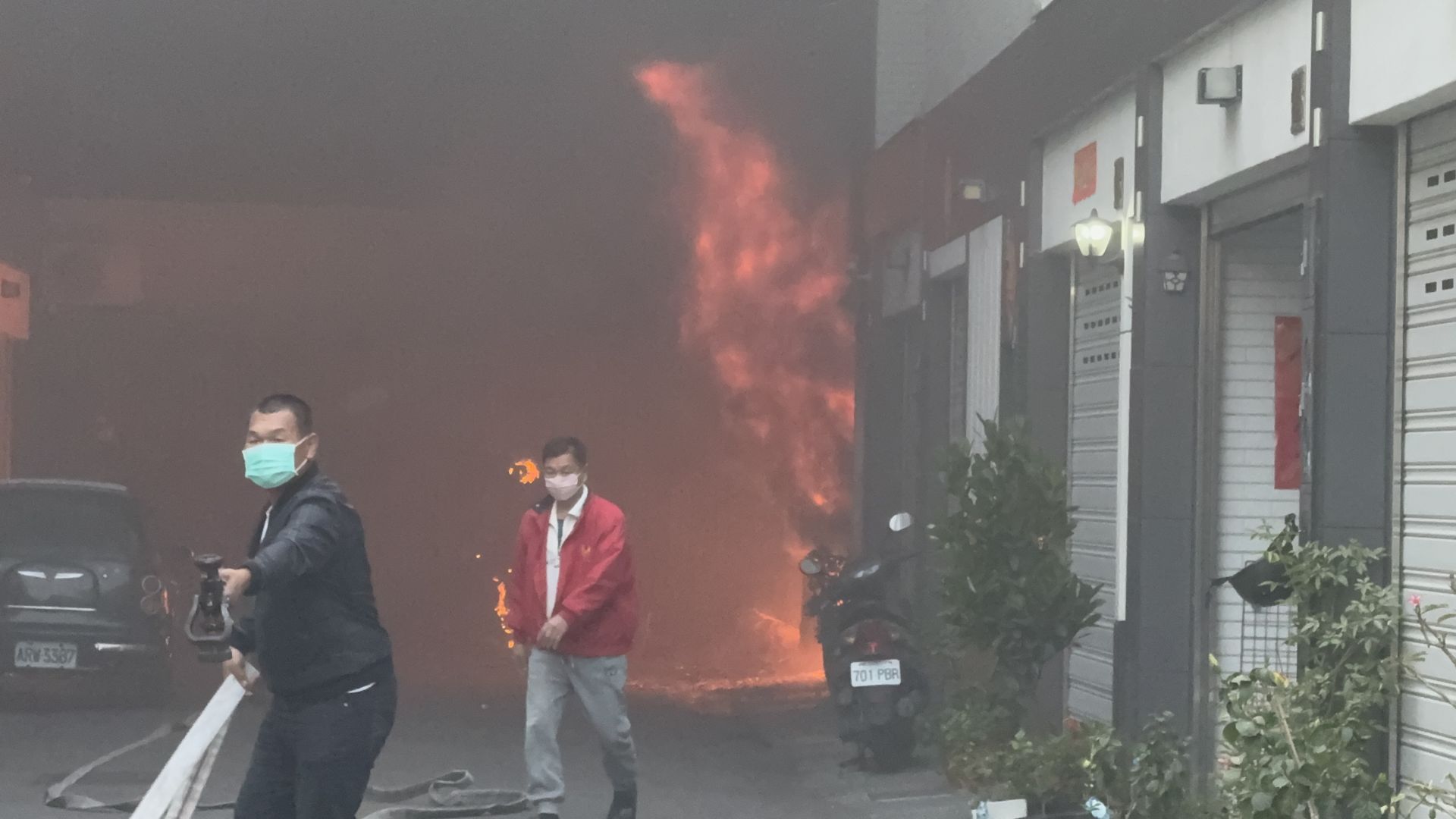 【17:53出稿;18:50更新】台南歸仁區20日傍晚傳出住宅火警,一棟4樓民宅的一樓車庫突然起火,停放的自小客車與電動機車陷入火海,濃煙、火舌不斷往外竄,住戶緊急逃出、鄰居也嚇得報案。警消到場迅速佈線灌救,火勢在短時間內控制並撲滅,所幸沒有造成重大人員傷亡,但現場一隻犬隻被救出時已呈現命危狀態,飼主抱著愛犬崩潰痛哭的畫面,讓人看了鼻酸。