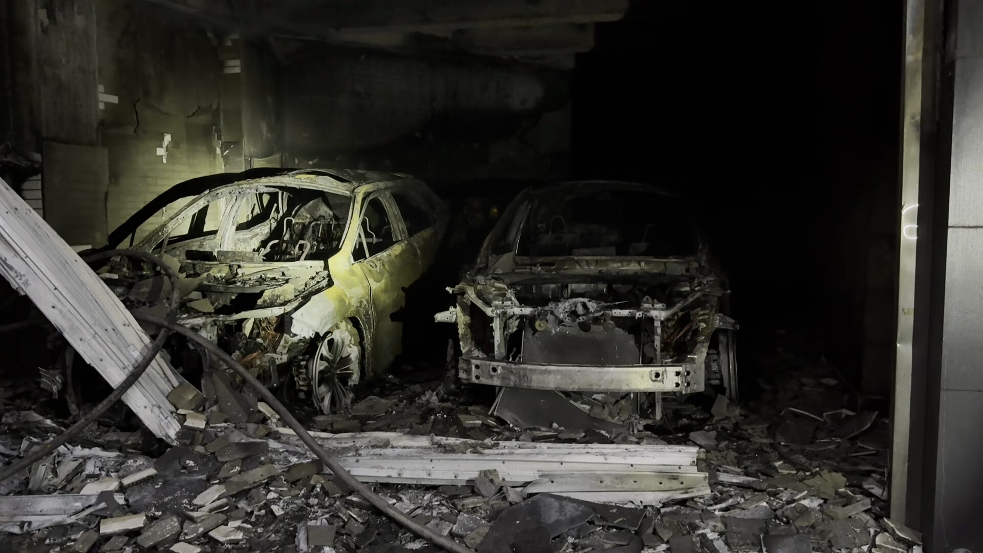 消防局指出,119勤務中心接獲報案後,立即派遣附近等多分隊共16車、警消35人到場搶救,由於消防人員到場已有濃煙及火舌竄出,現場為一棟4樓建物,一樓車庫內有2輛自小客車與2輛電動機車燃燒,燃燒面積約25平方公尺,火勢在短時間內撲滅。