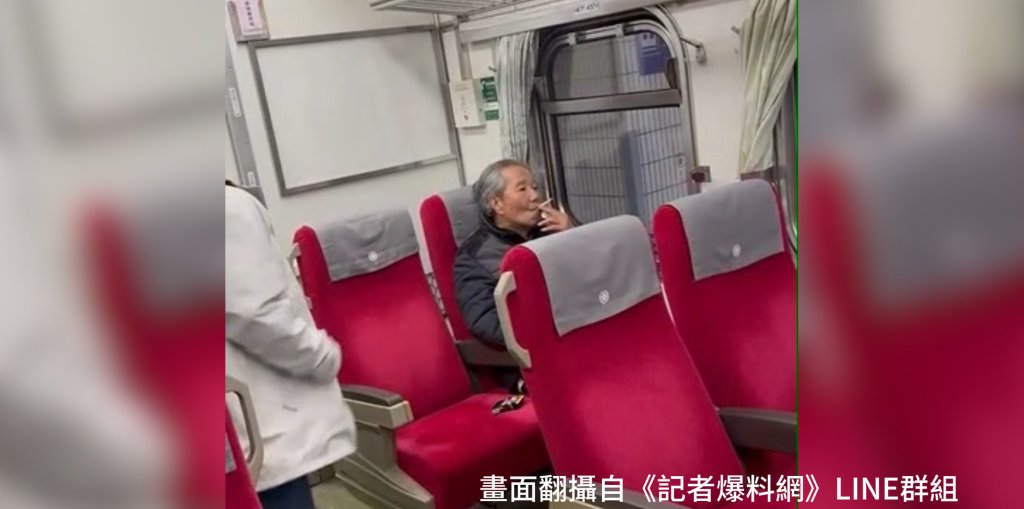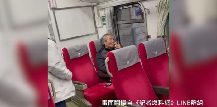 台鐵第129次自強號昨(22)日下午14時許行經台北至板橋區間時,1名頭髮斑白的阿伯在車廂內公然點菸。