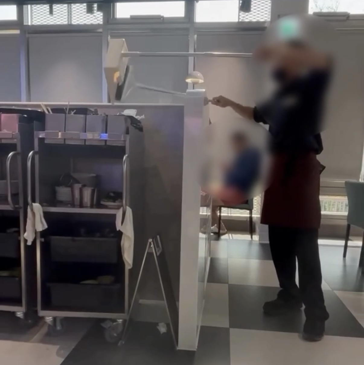 當事人隨後將拍下的影片向店員反映,希望避免在用餐區出現此類行為。店員觀看影片後皺眉回應,會向主管反映處理。