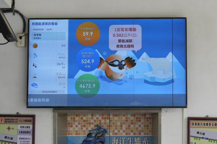 【記者戴英薇/屏東報導】 在全球淨零碳排趨勢下,校園為推動永續行動的重要場域,屏東縣內埔鄉泰安國小,從停車場透水性鋪面、教學大樓外牆的遮陽工程、屋頂太陽能板到教室內的人力腳踏車、水力發電模組等各項能源教具,將能源教育融入校園環境,獲得114年全國推動能源教育標竿銀獎。
