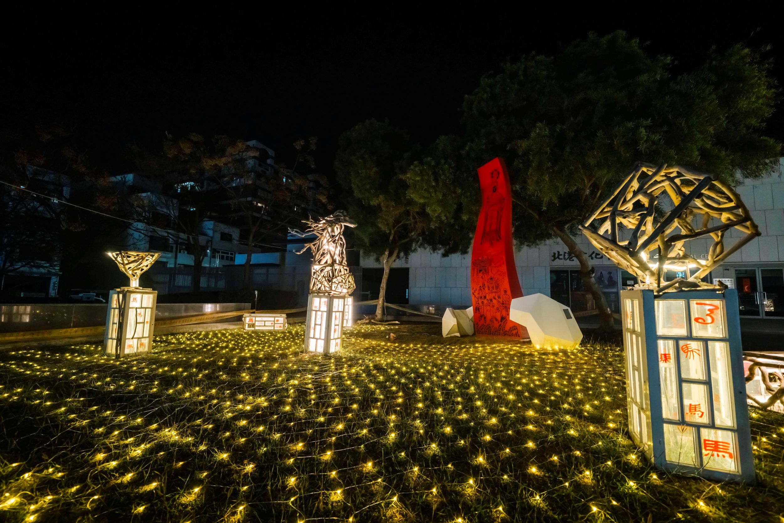 謝明璇進一步指出,本屆燈會不能錯過的有「義民廟燈區、巷弄老街燈區」,以北港國家級民俗「北港迎媽祖」為設計靈感,編織出一條如遶境般行進的巷弄光路,呼應本次燈會主題,以「未來城市博物館」為概念,將歷史器物、信仰符碼與街角記憶轉化為燈藝語言。「北港文化中心燈區」,由台西藝術協會藝術家丁仁桐、吳炯韋、詹秋得共同創作,團隊長期以漂流木、蚵殼與海廢進行創作,嘗試在「被遺棄之物」中,重新找回人與海的連結,以白馬為核心,呼應馬年意象,卻不奔馳張揚,而是在等待與凝視中展現力量。「北港鎮公所燈區」- 金馬飛天 × 馬上成功為題,由花燈藝術家黃鈺珍所設計,主燈以展翅飛馬腳踏祥雲的造型,象徵勇往直前、好運啟航。作品結合燈光、音效與動態設計,展現充滿能量的聲光效果,成為燈會中最具歡樂氣氛的亮點之一。