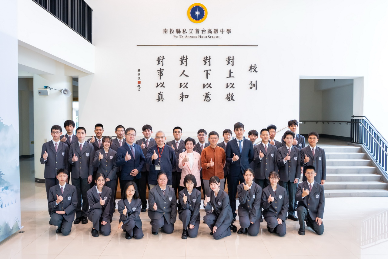 ▲南投縣私立普台高中今年英文、數A、數B、自然滿級分比例皆高於全國,展現優異的學習成果。二排中為校長惠沁宜,右五為教務主任連傑,右四為導師周漢羽,左五為副校長洪誌陽,左四為導師蔡植棟。(圖/普台高中)